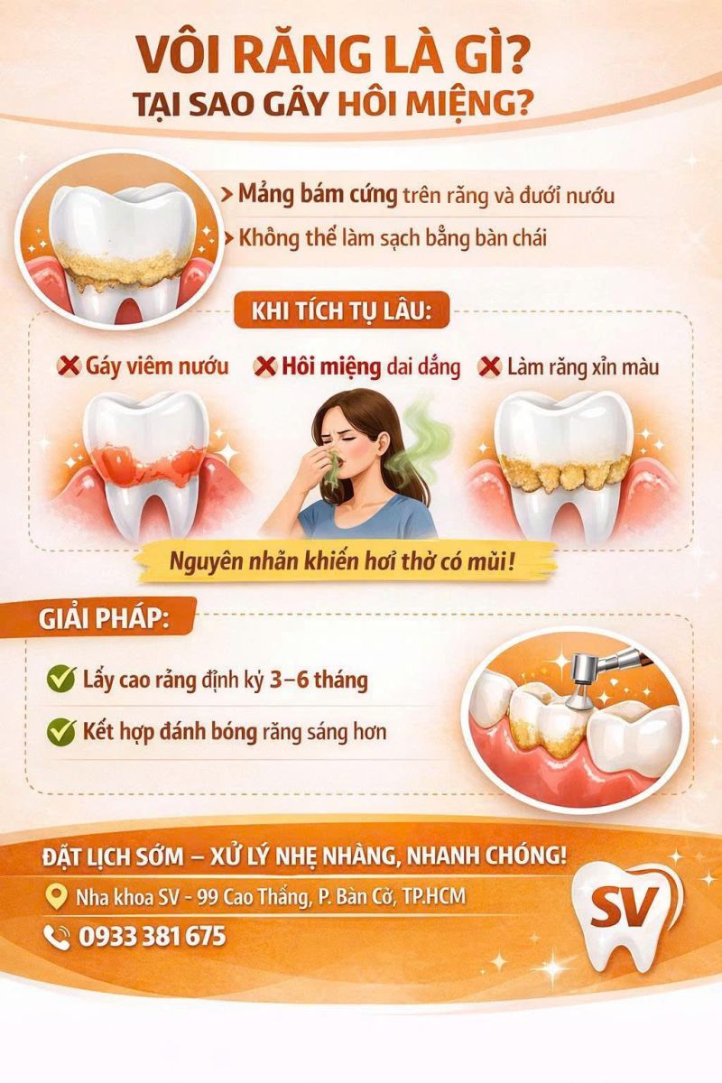 Vi khuẩn trong vôi răng phân hủy thức ăn và tạo mùi khó chịu