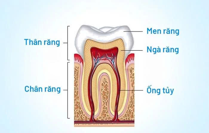 Mỗi chiếc răng đều có tủy răng – gồm mạch máu và thần kinh – nằm bên trong thân và chân răng. Tủy răng có vai trò: