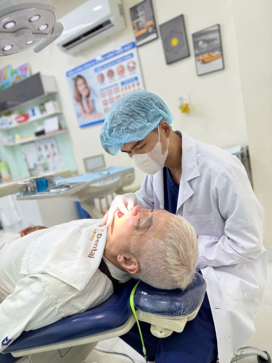 Không chỉ phục vụ khách hàng trong nước, Nha khoa SV còn là điểm đến tin cậy của khách hàng quốc tế. Trong hình, bác sĩ SV đang trực tiếp điều trị cho một khách hàng ngoại quốc, chứng minh uy tín và chất lượng dịch vụ đã vượt ra ngoài biên giới.