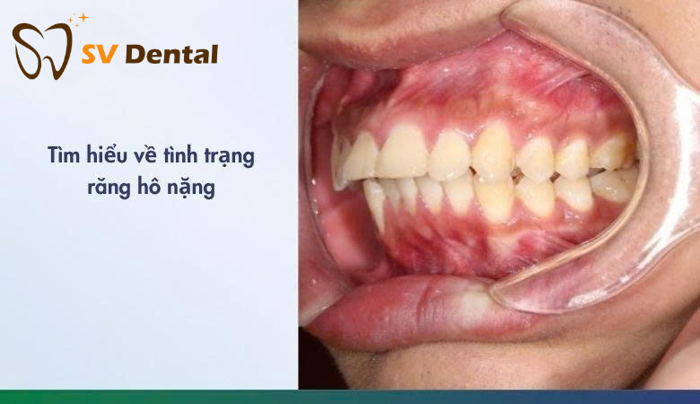 Răng hô nặng (hay còn gọi là răng vẩu nặng) là tình trạng răng hàm trên chìa ra quá mức so với hàm dưới, khiến khuôn mặt mất cân đối và khó khép môi tự nhiên. Người bị răng hô nặng thường có biểu hiện gương mặt nhô ra phía trước, môi trên đưa ra nhiều và ảnh hưởng lớn đến giao tiếp hàng ngày.
