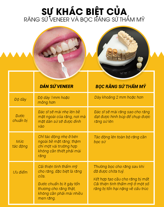 | Tiêu chí | Bọc răng sứ | Dán sứ Veneer |