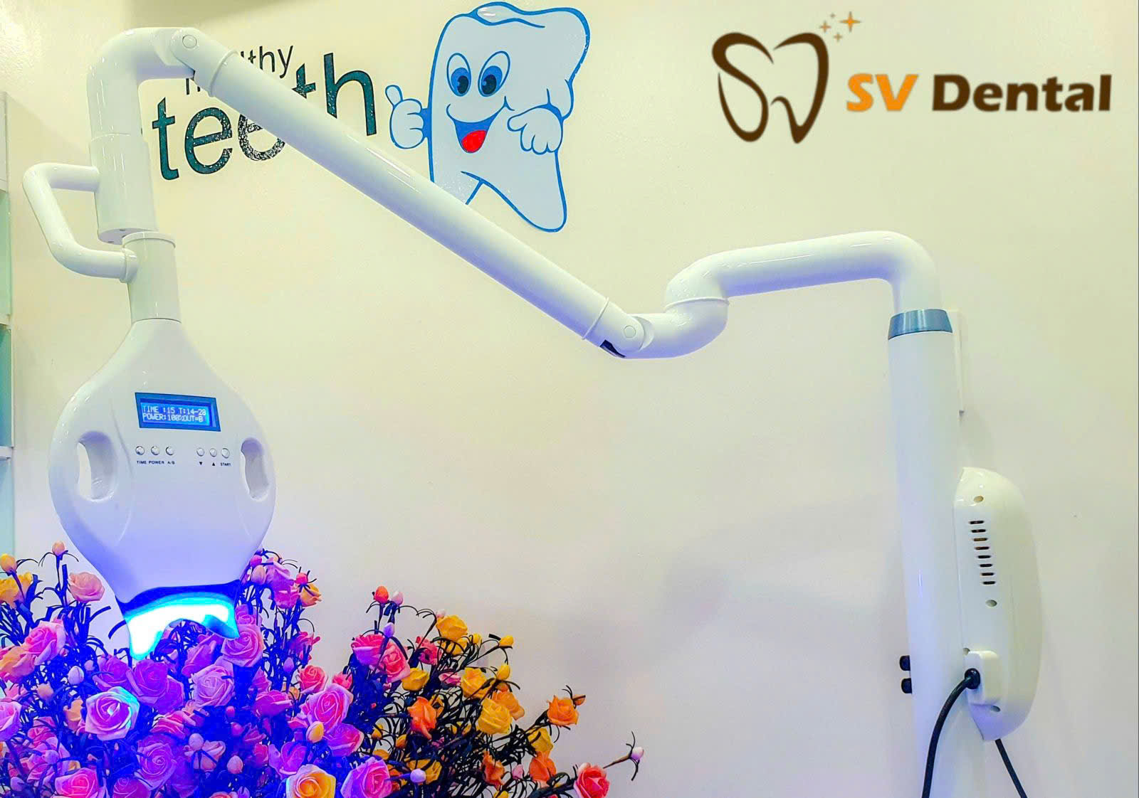 Tại Nha Khoa SV, công nghệ tẩy trắng răng chuyên sâu bằng ánh sáng lạnh hiện đại giúp khách hàng có thể sở hữu nụ cười trắng bật tông chỉ sau 60 phút.