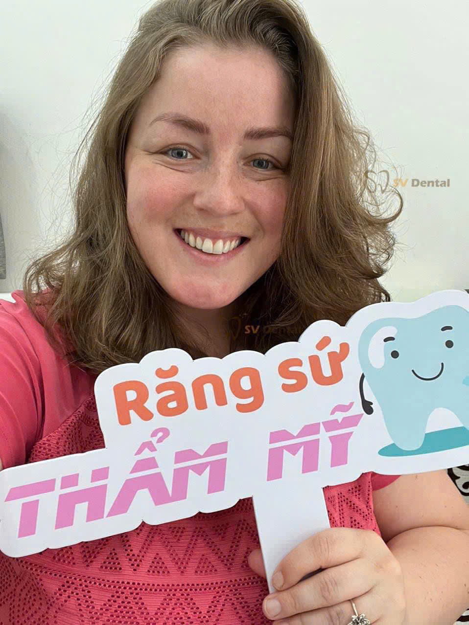 CÔ TRANG THỰC HIỆN GẮN RĂNG SỨ HÀM TRÊN TẠI NHA KHOA SV