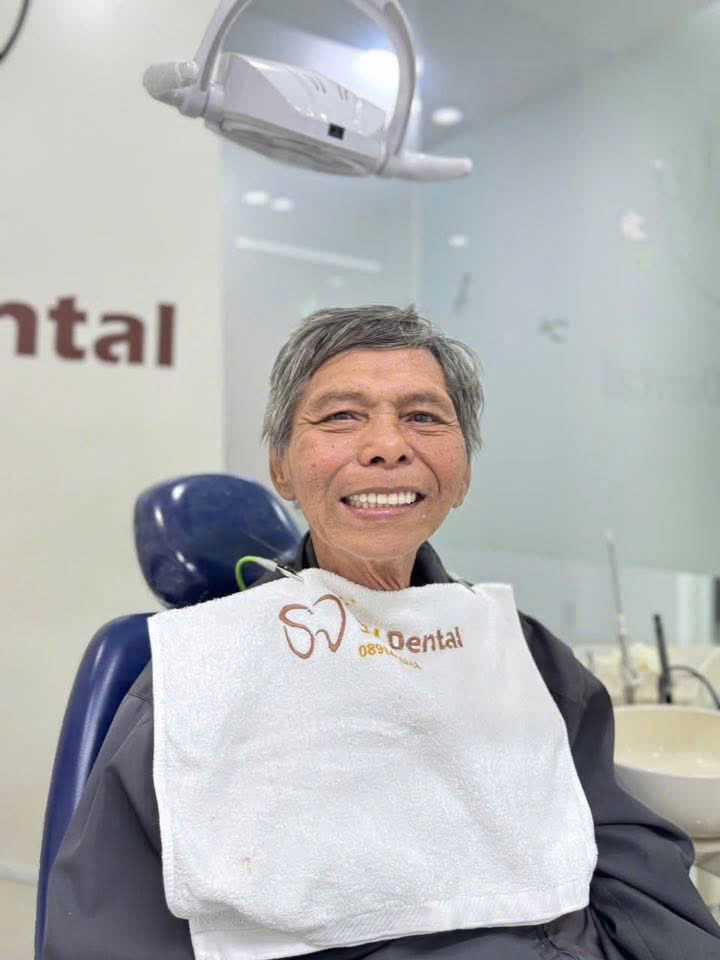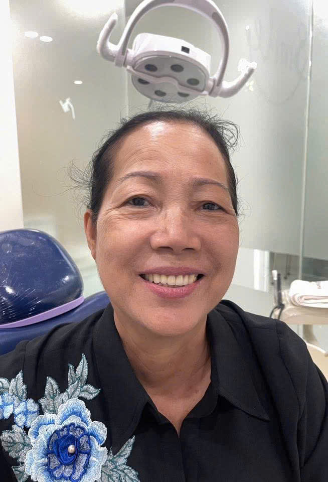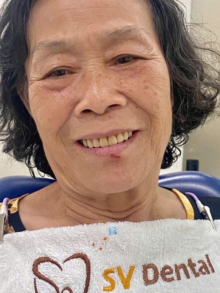 bà Tư phục hình tháo lắp tại Nha khoa sv