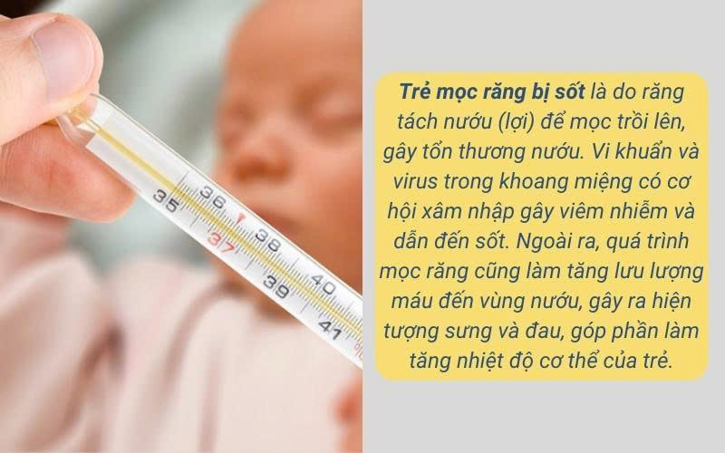 Khi răng trồi lên, nướu sẽ bị rách nhẹ, tạo điều kiện cho vi khuẩn xâm nhập → gây viêm → tăng thân nhiệt.